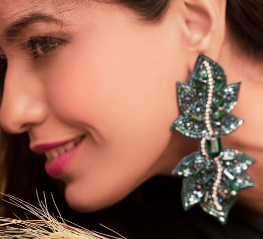 43% Off - Limited Time OfferGorgeous Emerald Earrings with Semi-Precious Crystal-Cut Stones