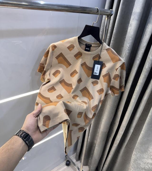 84% Off - Limited Time OfferHugo Boss Beige Monogram Premium T-Shirt