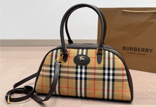 66% Off - Limited Time OfferBurberry Highands Checked Jacquard Bowling Bag