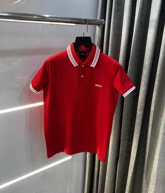 Hugo Boss Red Collar Look Premium Polo T-Shirt