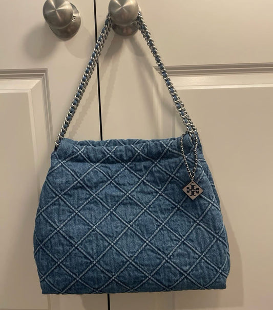 59% Off - Limited Time OfferTO-RY BUR-CH AUTHENTIC FLEMING DENIM HOBO BAG