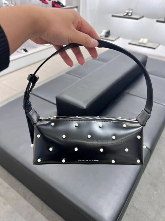 73% Off - Limited Time OfferCHARLES & KEITH BLACK WHITE PEARL EMBELLISHED SLEEK AND TRENDY BAG