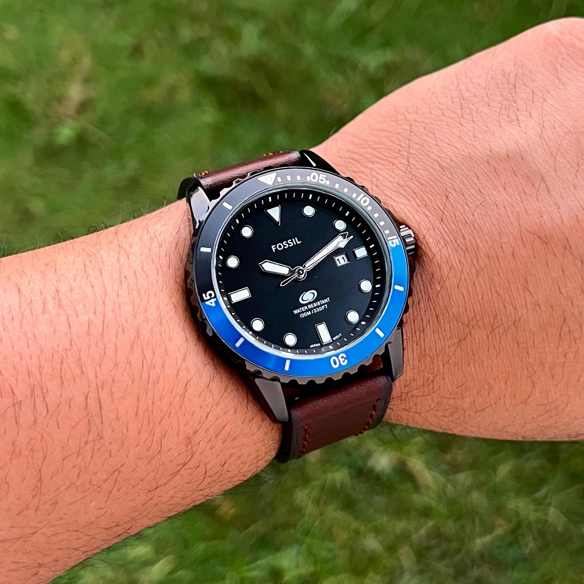 Purposeful design details define our time-honoured watch collection, Fossil Dive timepiece is expertly crafted with a brown LiteHide leather strap. (SML001)