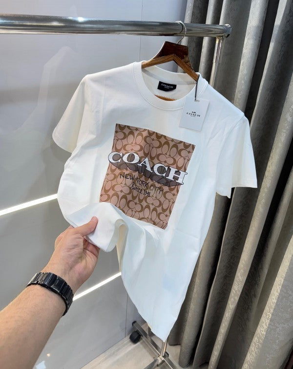 Elevate your everyday wear with this Coach-inspired white classic T-shirt, crafted from imported cotton Lycra for a smooth, breathable feel and relaxed comfort. A wardrobe staple with effortless style and premium finish.